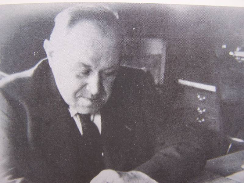 Op de foto staat dokter Kurth Basch uit Kaiserslautern, Duitsland. In 1939 vluchte deze Joodse huisarts naar Nederland en vroeg daar asiel aan. De foto is van na de oorlog toen dokter Basch zijn praktijk in Kaizerslautern weer hervatte.